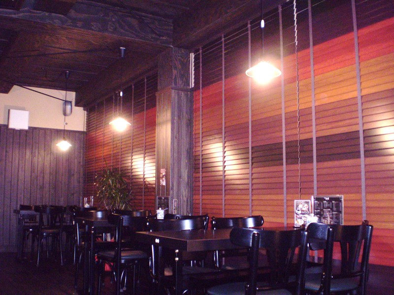 店内の木目調の内装に合わせて、木製ブラインドで統一いたしました。
