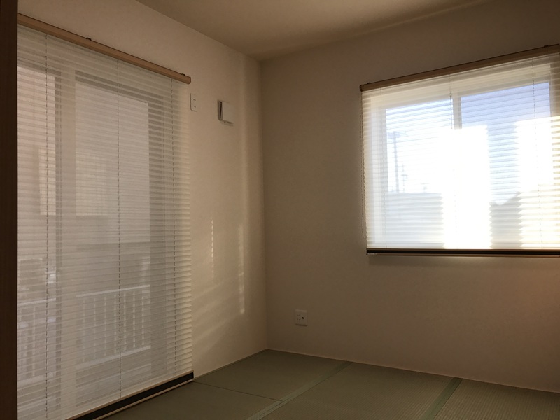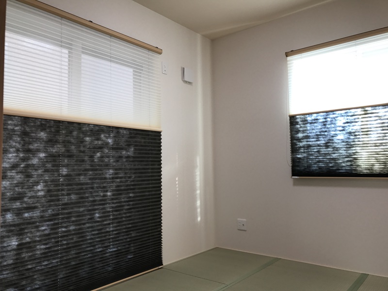 和室のプリーツスクリーンも、黒でシックなものをお取付致しました。